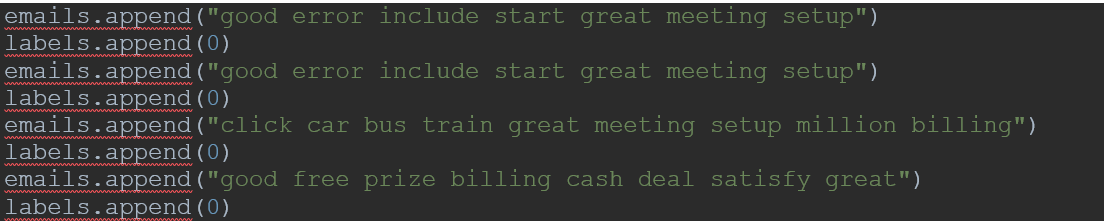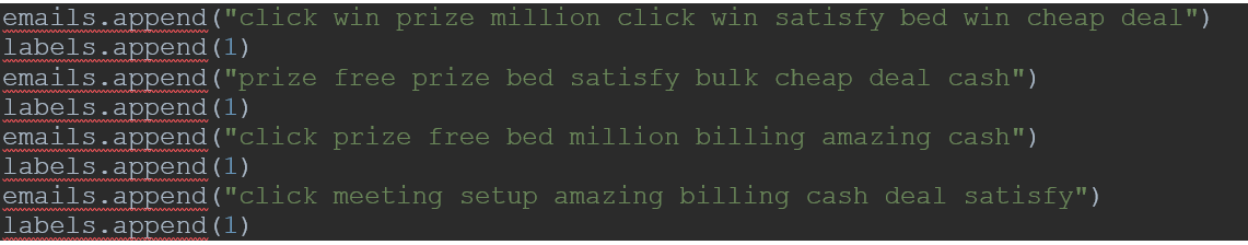 Given some pseudo email as below and keep the Ham/Spam class information in the label variable where 1 represents Spam email and 0 for Ham mails. Spam email: